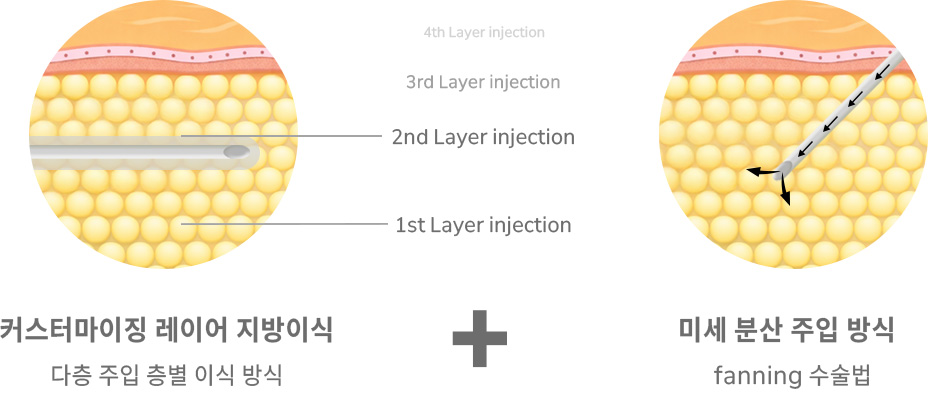 원하는 라인에 맞게 자가유세포 지방을 이식합니다. 자가 지방이 더욱 안정적으로 생착되며